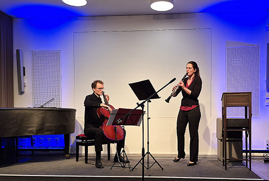 In der Ausstellung werden weiterhin mehrere Beispiele für die Nachwirkung der Texte Heinrich von Kleists in der Musik dargestellt. Im Tagungsprogramm wurden „Vier Miniaturen über Heinrich von Kleist“ unter dem Titel ,den sichern Weg zu finden/ungestört‘ von Kilian Verburg durch Friederike Schumann (Klarinette) und Frank Israel (Cello) aufgeführt. Die Kompositionen von 2025 bringen die Klarinette zu einer neuen Geltung. Kilian Verburg hat schon 2016 mit Zerbrochnes Krugfragment – VV. 1097-1117 für Klarinette solo die Klangfarben und Spielmöglichkeiten des Instruments erforscht.[19] Es geht dabei nicht um eine Melodie, vielmehr erhält bei ihm die Klarinette eher eine eigenwillige Stimme. In der Version für Klavier (solo) kommt es entsprechend stärker auf den Anschlag und seinen Nachklang an. Im Komponistengespräch mit Adrian Schliebe spricht Kilian Verburg davon, dass er sich durch Texte von Heinrich von Kleist wie Penthesilea, Das Käthchen von Heilbronn, Der Prinz von Homburg und die Erzählungen inspirieren lasse.[20]