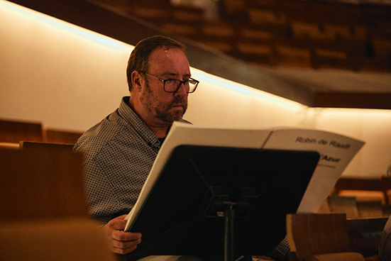 Mit Messiaen und Boulez wurde bereits die Frage des Komponierens im 20. Jahrhundert zwischen Gottesglauben, Politisierung und Säkularisierung angekündigt. Als Meisterschüler von Pierre Boulez weiß der Komponist Robin de Raaff um die Fragen, die seinen Lehrer umtrieben. Wiederum geht es um ein Gedicht, das diesmal als „Kantate für Chor und Orchester“ komponiert wird. Obwohl die Kantate nicht ausschließlich auf die Kirchenmusik festgelegt ist, wurde sie doch in der Musikgeschichte durch die Kirchenkantaten als Form seit dem Barock besonders verbreitet. De Raaff komponiert L’Azur von Stéphane Mallarmé zu einer Kantate, wobei das Gedicht zunächst Le Ciel (Der Himmel) heißen sollte. Doch dem zweifelnden Dichter Mallarmé war Le Ciel durch das Christentum zu sehr aufgeladen, so dass er allein die Farbe Himmelsblau, L’Azur, zum Titel machte. Der Komponist erläutert seine Interpretation entsprechend:
