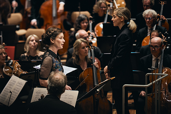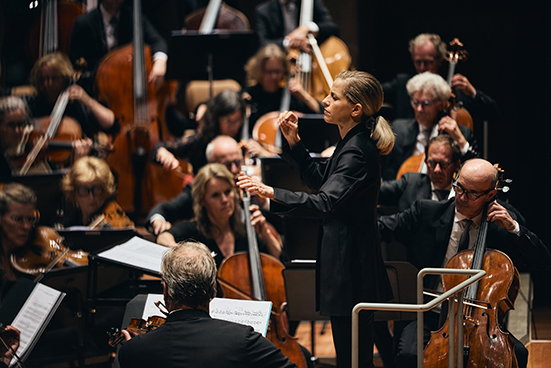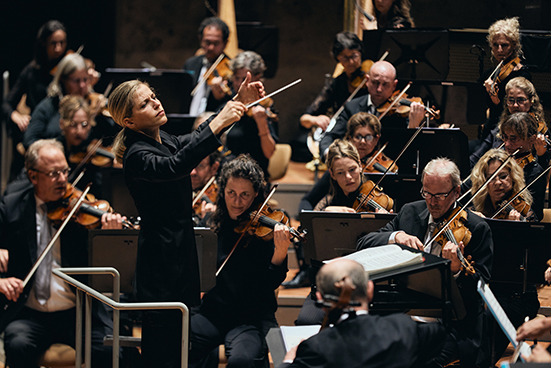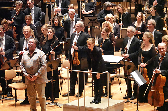 In der Aufführung mit Karina Canellakis kam die komplexe Komposition all dessen, was Pierre Boulez an der Musik des 20. Jahrhunderts wichtig war, fulminant zur Geltung. L’Azur erhielt starken Beifall. Boulez hatte in Rituel in memoriam Bruno Maderna bereits das Gedenken in eine neue Form der Aufführungspraxis transformiert. De Raaff hat sich vielleicht an anderer Stelle zu Rituel geäußert oder beim Komponieren vergessen. Das Konzertpodium wird nicht für den Raumklang aufgelöst, gewiss aber, wurde ein starker Raumklang mit kosmologischen Anspielungen erzeugt. Karina Canellakis konnte die Dimension mit ihrem Dirigat perfekt herausarbeiten. Im zweiten Teil des Abends folgte wiederum ein spätes, letztes Werk mit Sergej Rachmaninows Sinfonischen Tänzen. Auch hier wie schon bei Bartóks Konzert für Orchester funktionierte die sinfonische Dramaturgie unter Einsatz des Taktstockes. Tosender Applaus.