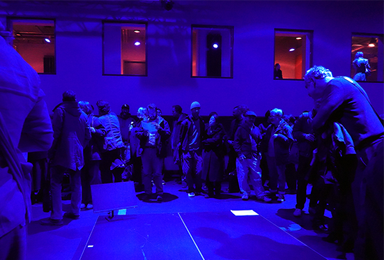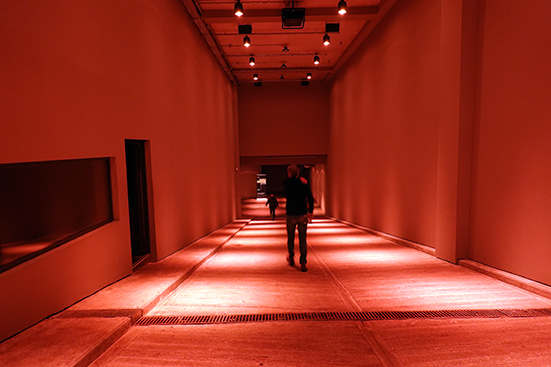 Da der Berichterstatter die beiden Konzerte um 19:00 Uhr und um 21:00 Uhr gewählt hatte, kam es zu Verzögerungen und Umstellungen, die unter den Schwingungen, die die Stücke selbst generierten, nur all zu verständlich waren. Zunächst kamen 6 Stücke aus Peter Ablingers Opus magnum, dem 36-teiligem Werkkomplex Weiss/Weisslich im Gang zur Betonhalle abwechselnd auf zwei Plattformen zur Aufführung. In Weiss/Weisslich 17 wird mit Violine, Flöte, Sopransaxofon, Trompete und Bassposaune einzeln das weiße Rauschen bzw. mit der Viola und Sinuston erkundet. Unter weißem Rauschen wird eines mit einem konstanten Leistungsdichtespektrum in der Akustik verstanden. Das weiße Rauschen hat keine Schwingung, ließe sich sagen. Im Unterschied dazu erzeugt der Sinuston eine unendlich gleichbleibende Schwingung.