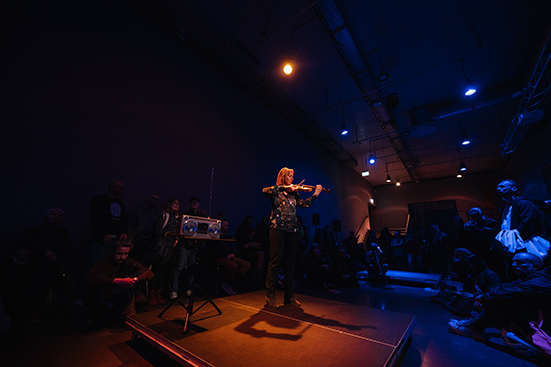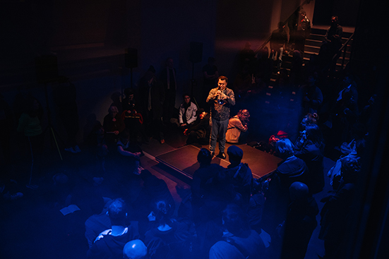 Ein Festival für Musik der Gegenwart mit einer Vielzahl von Veranstaltungen und Mitwirkenden ebenso wie Zuhörer*innen generiert nicht nur mit 16 Uraufführungen in 28 Veranstaltungen bei über 7.500 Besucher*innen große Zahlen, vielmehr pendelt es zwischen Neu- und Wiederentdeckungen, Diskursen und Musikmachen, Konzerten und innovativen Formaten. Die Ensembles und Gäste reisen nicht nur an, um eine Performance abzuliefern, sie lassen sich auch von dem einen oder anderen Gespräch mitreißen. Manchmal verläuft die Festival-Kommunikation auch wortlos einfach nur durch ein Zunicken. Louis Chude-Sokei (Stimme, Live-Elektronik) und Jan St. Werner (Live-Elektronik) erkundete mit der Uraufführung von Music for Commons Sensed: No Nation Left But the Imagination die Stimme.
