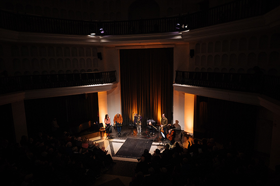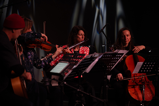 Das Ensemble Daedalus – Didier Aschour, Gitarre, Amélie Berson, Flöte, Pierre-Stéphane Meugé, Saxofon, Christian Pruvost, Trompete, Thierry Madiot, Posaune, Silvia Tarozzi, Violine, Cyprien Busolini, Viola, Deborah Walker, Violoncello – wird hauptsächlich vom DRAC Occitanie in Toulouse gefördert und hat sich für MaerzMusik 2026 auf Kompositionen spezialisiert, die alle auf offenen Partituren basieren. Offene Partitur heißt in diesem Fall, dass die Komposition in der Partitur nicht vollständig festgelegt ist. Éliane Radigues OCCAM Hepta I von 2019 ist dafür ein gutes Beispiel. Bereits 2024 hatte Erwan Keravec mit seinem bretonischen Dudelsack aus der Kompositionsserie OCCAM von Radique OCCAM XXVII bei MaerzMusik aufgeführt.[1] In Festivalausgabe 2022 war Èliane Radique überhaupt mit einem Schwerpunkt wiederentdeckt worden.[2] Für OCCAM bezieht sich Radique auf eine „mündliche Überlieferung“: