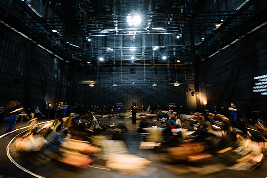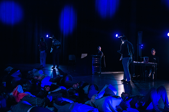 In der raumgreifenden Klanginstallation I AM ALL EARS von Wojtek Blecharz im Haus der Berliner Festspiele als Abschlussveranstaltung kamen vielfältige Klanggeräusche von mehreren Akteur*innen zum Zuge, die in einer Art Parcours durch die Räume auf selbstbestimmte Zeit erlebt werden konnten. Die Installationen von Aleksandra Słyż Legends erase memory quietly (2026) als Uraufführung und Wojtek Blecharz‘ Soft Power 2 (2025/26) geben als Ausschnitt aus dem Parcours einen Wink, worum es ging. Es geht nicht nur ums Hören mit den Ohren. Am Eingang zur Seitenbühne erhielten die Besucher*innen einen Zettel mit den Anweisungen: „Wenn das Blaue Licht an ist: Stecken Sie den Ohrstöpsel in ein Ohr. Legen Sie das andere Ohr auf das Kissen. (Soft Power 2). Wenn das orange Licht an ist: Verwenden Sie in diesem Stück keine Ohrstöpsel. Empfohlene Position: Legen Sie sich auf die Seite und legen Sie ein Ohr auf das Kissen.“