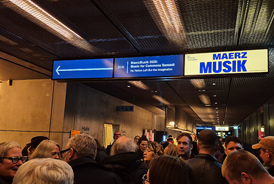 Das Festival MaerzMusik 2026 wird noch länger nachklingen. Die Aufführung von Weiss/Weisslich 17 für ein Instrument und Rauschen im Zugang zur Betonhalle des silent green durch das Ensemble Daedalus mit 6 Instrumenten hätte dem aus Schwanenstadt, Österreich, stammenden und am 17. April 2025 in Berlin verstorbenen Peter Ablinger, der seit 2012 Mitglied der Akademie der Künste in der Sektion Musik war, sicher gefallen. So wurde es wie auch OCCAM Hepta I von Éliane Radigue, die am 23. Februar 2026 in Paris im Alter von 94 verstorben war, ein requiem-artiges Nachklingen. Die Betonhalle und die Kuppelhalle des Kulturortes silent green waren für beide, ganz unterschiedliche Kompositionen passende Orte. Das Radialsystem gehörte wieder zu den Aufführungsorten und Wojtek Blecharz erkundete mit seiner Konzertinstallation I Aam All Ears eine ganze Reihe von Räumen im Haus der Berliner Festspiele.
